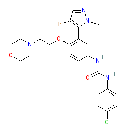 | SMILES | Cn1ncc(Br)c1-c1cc(NC(=O)Nc2ccc(Cl)cc2)ccc1OCCN1CCOCC1 |
