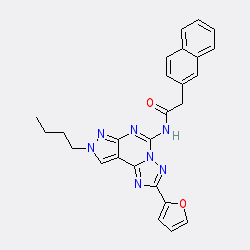 | SMILES | CCCCn1cc2c(nc(NC(=O)Cc3ccc4ccccc4c3)n3nc(-c4ccco4)nc23)n1 |