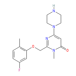 | SMILES | Cc1ccc(F)cc1OCc1nc(N2CCNCC2)cc(=O)n1C |