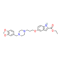 | SMILES | CCOC(=O)c1cc2cc(OCCCN3CCN(Cc4ccc5c(c4)OCO5)CC3)ccc2[nH]1 |