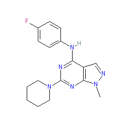 | SMILES | Cn1ncc2c(Nc3ccc(F)cc3)nc(N3CCCCC3)nc21 |