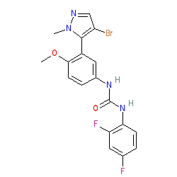 | SMILES | COc1ccc(NC(=O)Nc2ccc(F)cc2F)cc1-c1c(Br)cnn1C |