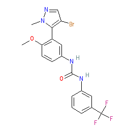 | SMILES | COc1ccc(NC(=O)Nc2cccc(C(F)(F)F)c2)cc1-c1c(Br)cnn1C |