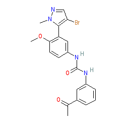 | SMILES | COc1ccc(NC(=O)Nc2cccc(C(C)=O)c2)cc1-c1c(Br)cnn1C |