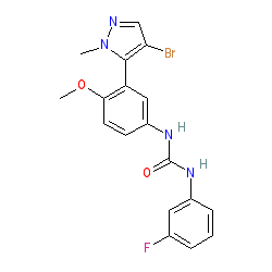 | SMILES | COc1ccc(NC(=O)Nc2cccc(F)c2)cc1-c1c(Br)cnn1C |
