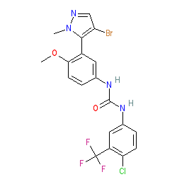 | SMILES | COc1ccc(NC(=O)Nc2ccc(Cl)c(C(F)(F)F)c2)cc1-c1c(Br)cnn1C |