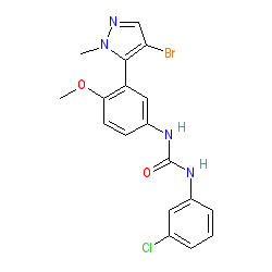 | SMILES | COc1ccc(NC(=O)Nc2cccc(Cl)c2)cc1-c1c(Br)cnn1C |