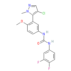 | SMILES | COc1ccc(NC(=O)Nc2ccc(F)c(F)c2)cc1-c1c(Cl)cnn1C |