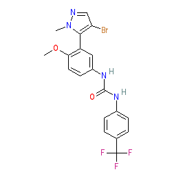 | SMILES | COc1ccc(NC(=O)Nc2ccc(C(F)(F)F)cc2)cc1-c1c(Br)cnn1C |