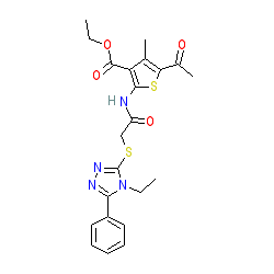 | SMILES | CCOC(=O)c1c(NC(=O)CSc2nnc(-c3ccccc3)n2CC)sc(C(C)=O)c1C |