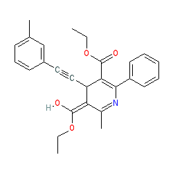 | SMILES | CCOC(=O)C1=C(c2ccccc2)N=C(C)/C(=C(/O)OCC)C1C#Cc1cccc(C)c1 |
