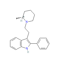 | SMILES | C[C@@H]1CCCCN1CCc1c(-c2ccccc2)[nH]c2ccccc12 |