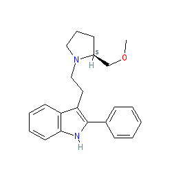 | SMILES | COC[C@@H]1CCCN1CCc1c(-c2ccccc2)[nH]c2ccccc12 |