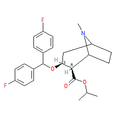 | SMILES | CC(C)OC(=O)[C@@H]1C2CCC(C[C@@H]1OC(c1ccc(F)cc1)c1ccc(F)cc1)N2C |