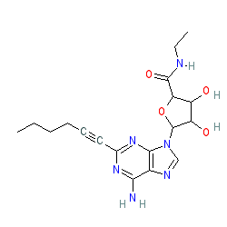 | SMILES | CCCCC#CC1=NC2=C(C(=N1)N)N=CN2C3C(C(C(O3)C(=O)NCC)O)O |