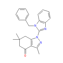 | SMILES | Cc1nn(-c2nc3ccccc3n2Cc2ccccc2)c2c1C(=O)CC(C)(C)C2 |