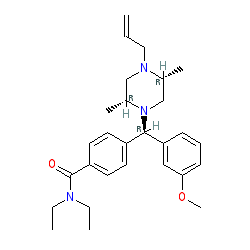 | SMILES | C=CCN1C[C@@H](C)N([C@H](c2ccc(C(=O)N(CC)CC)cc2)c2cccc(OC)c2)C[C@H]1C |