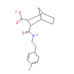 | SMILES | O=C(O)C1C2CCC(C2)C1C(=O)NCCc1ccc(F)cc1 |