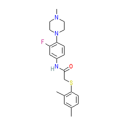 | SMILES | Cc1ccc(SCC(=O)Nc2ccc(N3CCN(C)CC3)c(F)c2)c(C)c1 |