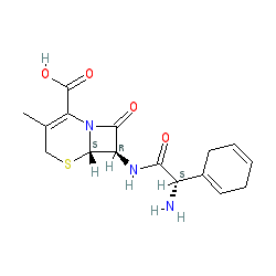 | SMILES | CC1=C(C(=O)O)N2C(=O)[C@@H](NC(=O)[C@@H](N)C3=CCC=CC3)[C@@H]2SC1 |