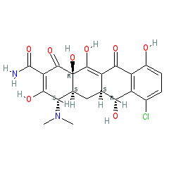 | SMILES | CN(C)[C@@H]1C(O)=C(C(N)=O)C(=O)[C@]2(O)C(O)=C3C(=O)c4c(O)ccc(Cl)c4[C@H](O)[C@H]3C[C@@H]12 |