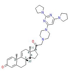 | SMILES | C[C@@]12C=CC(=O)C=C1CC[C@@H]1C2=CC[C@@]2(C)[C@H](C(=O)CN3CCN(c4cc(N5CCCC5)nc(N5CCCC5)n4)CC3)CC[C@H]12 |