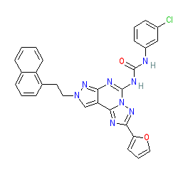 | SMILES | O=C(Nc1cccc(Cl)c1)Nc1nc2nn(CCc3cccc4ccccc34)cc2c2nc(-c3ccco3)nn12 |
