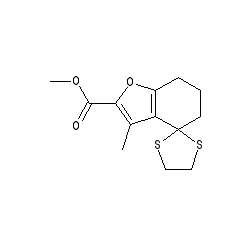 | SMILES | COC(=O)c1oc2c(c1C)C1(CCC2)SCCS1 |