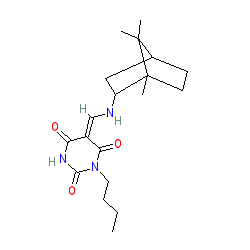 | SMILES | CCCCN1C(=O)NC(=O)/C(=C/NC2CC3CCC2(C)C3(C)C)C1=O |