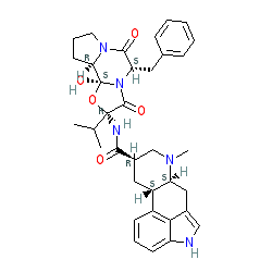 | SMILES | CC(C)[C@@]1(NC(=O)[C@@H]2C[C@H]3c4cccc5[nH]cc(c45)C[C@@H]3N(C)C2)O[C@@]2(O)[C@H]3CCCN3C(=O)[C@H](Cc3ccccc3)N2C1=O |