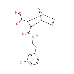 | SMILES | O=C(O)C1C2C=CC(C2)C1C(=O)NCCc1cccc(Cl)c1 |