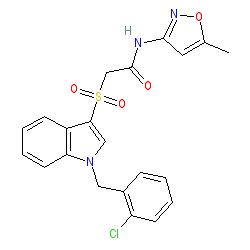 | SMILES | Cc1cc(NC(=O)CS(=O)(=O)c2cn(Cc3ccccc3Cl)c3ccccc23)no1 |