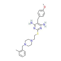 | SMILES | COc1ccc(Cc2c(N)nc(SCCN3CCN(Cc4ccccc4C)CC3)nc2N)cc1 |