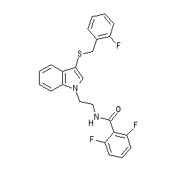 | SMILES | O=C(NCCn1cc(SCc2ccccc2F)c2ccccc21)c1c(F)cccc1F |