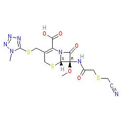 | SMILES | CO[C@]1(NC(=O)CSCC#N)C(=O)N2C(C(=O)O)=C(CSc3nnnn3C)CS[C@H]21 |