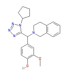 | SMILES | COc1cc(C(c2nnnn2C2CCCC2)N2CCc3ccccc3C2)ccc1O |