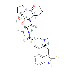 | SMILES | CC(C)C[C@H]1C(=O)N2CCC[C@@H]2[C@]2(O)O[C@](NC(=O)[C@H]3C=C4c5cccc6[nH]c(Br)c(c56)C[C@H]4N(C)C3)(C(C)C)C(=O)N12 |