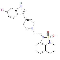 | SMILES | O=S1(=O)N(CCN2CC=C(c3c[nH]c4cc(F)ccc34)CC2)c2cccc3c2N1CCC3 |