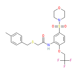 | SMILES | Cc1ccc(CSCC(=O)Nc2cc(S(=O)(=O)N3CCOCC3)ccc2OCC(F)(F)F)cc1 |