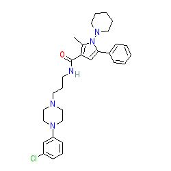 | SMILES | Cc1c(C(=O)NCCCN2CCN(c3cccc(Cl)c3)CC2)cc(-c2ccccc2)n1N1CCCCC1 |