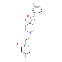 | SMILES | O=S(=O)(c1cccc(F)c1)C1(F)CCN(CCc2ccc(F)cc2F)CC1 |