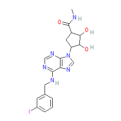 | SMILES | CNC(=O)C1CC(n2cnc3c(NCc4cccc(I)c4)ncnc32)C(O)C1O |