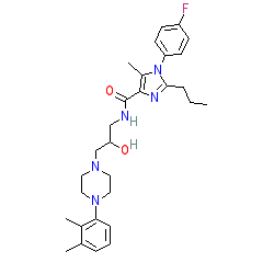 | SMILES | CCCc1nc(C(=O)NCC(O)CN2CCN(c3cccc(C)c3C)CC2)c(C)n1-c1ccc(F)cc1 |