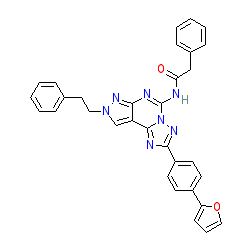 | SMILES | O=C(Cc1ccccc1)Nc1nc2nn(CCc3ccccc3)cc2c2nc(-c3ccc(-c4ccco4)cc3)nn12 |