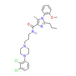 | SMILES | CCCc1nc(C(=O)NCCCN2CCN(c3cccc(Cl)c3Cl)CC2)c(C)n1-c1ccccc1OC |