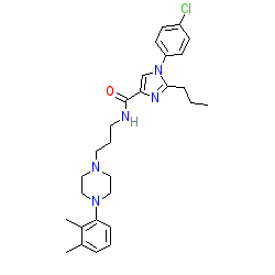 | SMILES | CCCc1nc(C(=O)NCCCN2CCN(c3cccc(C)c3C)CC2)cn1-c1ccc(Cl)cc1 |