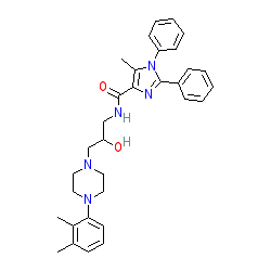 | SMILES | Cc1cccc(N2CCN(CC(O)CNC(=O)c3nc(-c4ccccc4)n(-c4ccccc4)c3C)CC2)c1C |