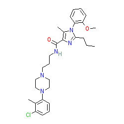 | SMILES | CCCc1nc(C(=O)NCCCN2CCN(c3cccc(Cl)c3C)CC2)c(C)n1-c1ccccc1OC |