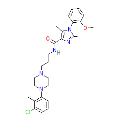 | SMILES | COc1ccccc1-n1c(C)nc(C(=O)NCCCN2CCN(c3cccc(Cl)c3C)CC2)c1C |