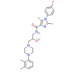 | SMILES | Cc1cccc(N2CCN(CC(O)CNC(=O)c3nc(C)n(-c4ccc(F)cc4)c3C)CC2)c1C |